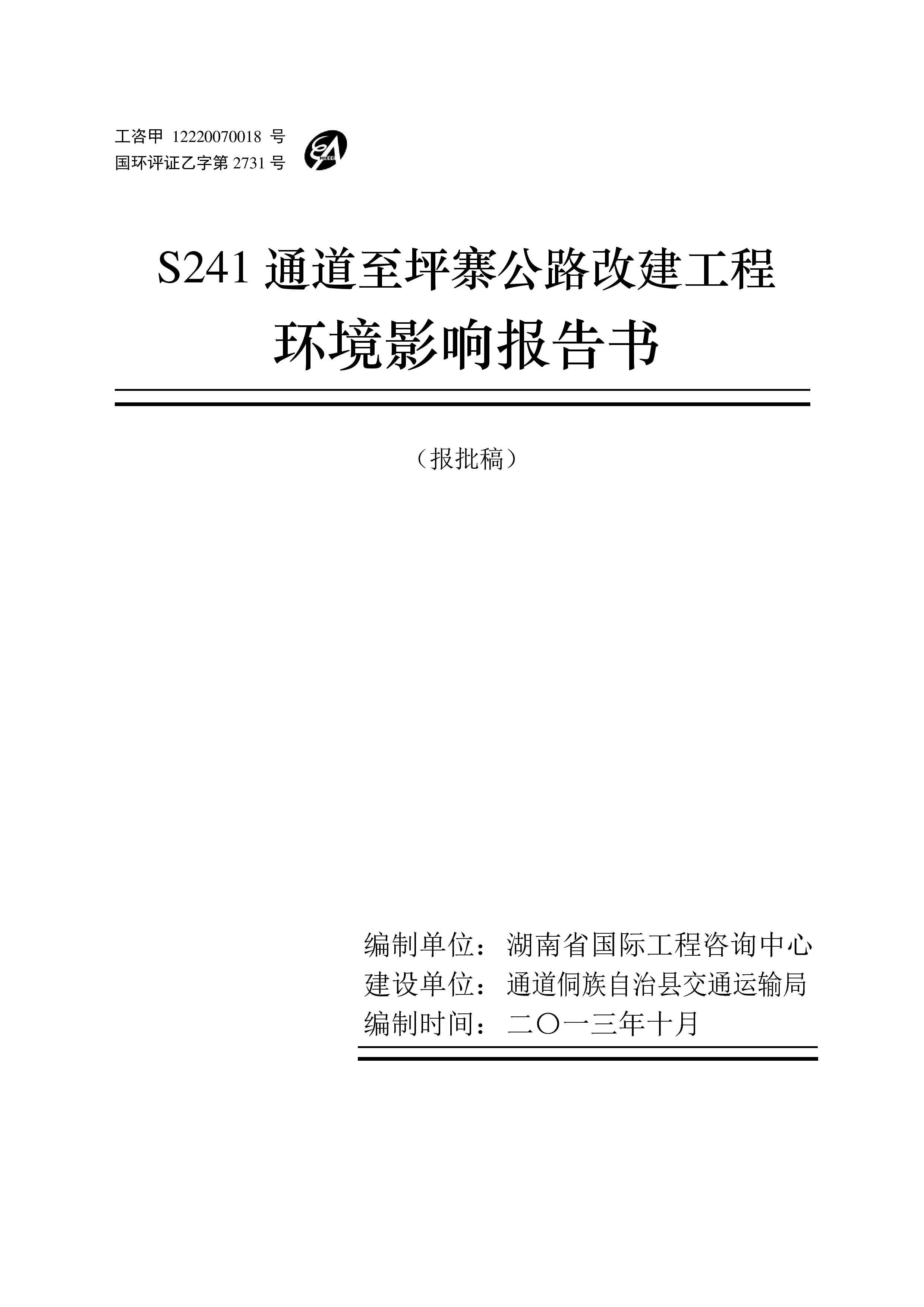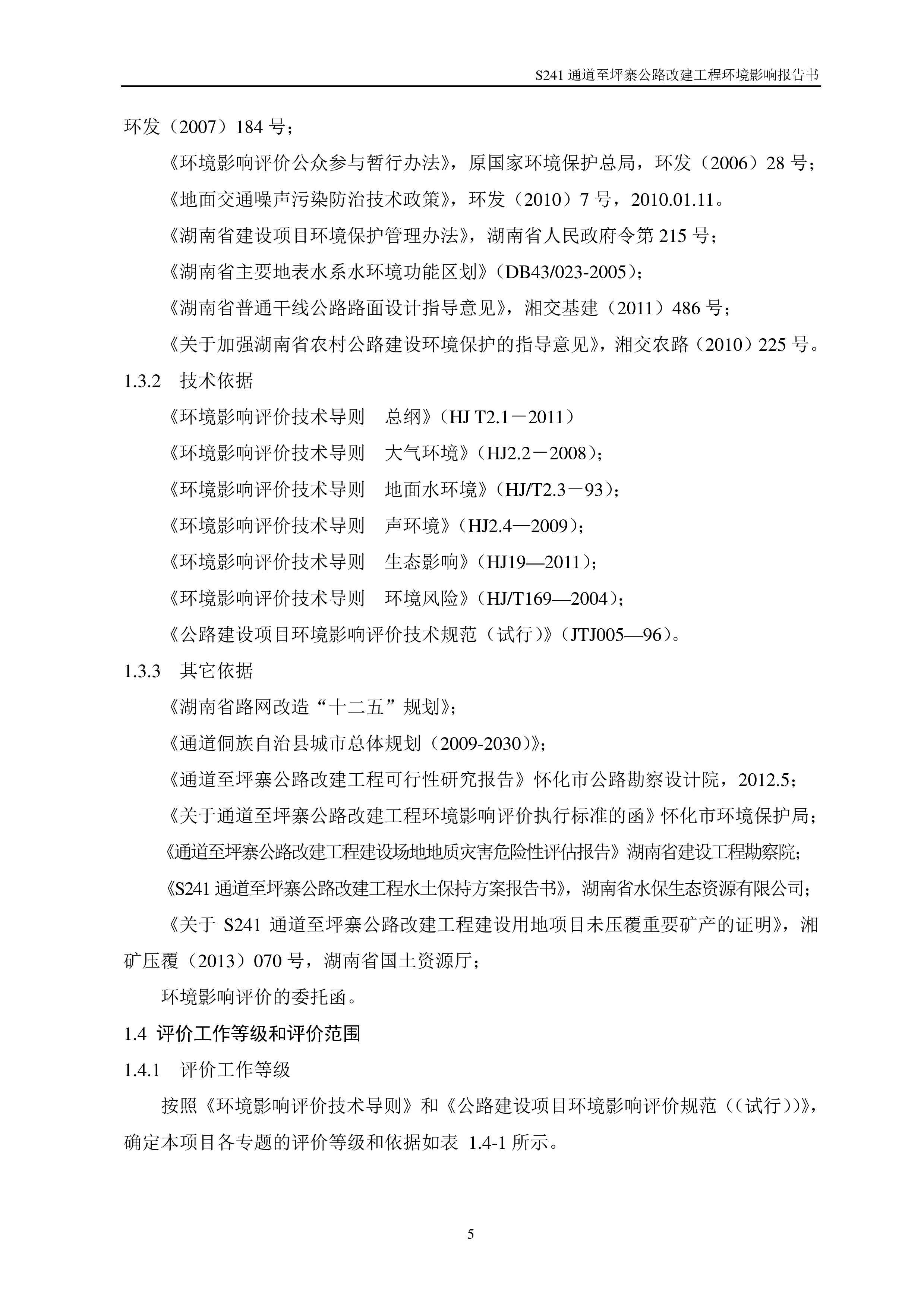 通道至坪寨公路改建工程環境影響報告書(報批稿)