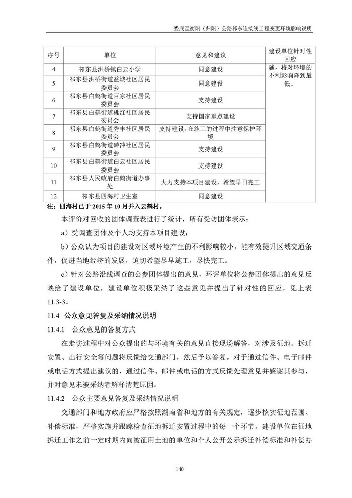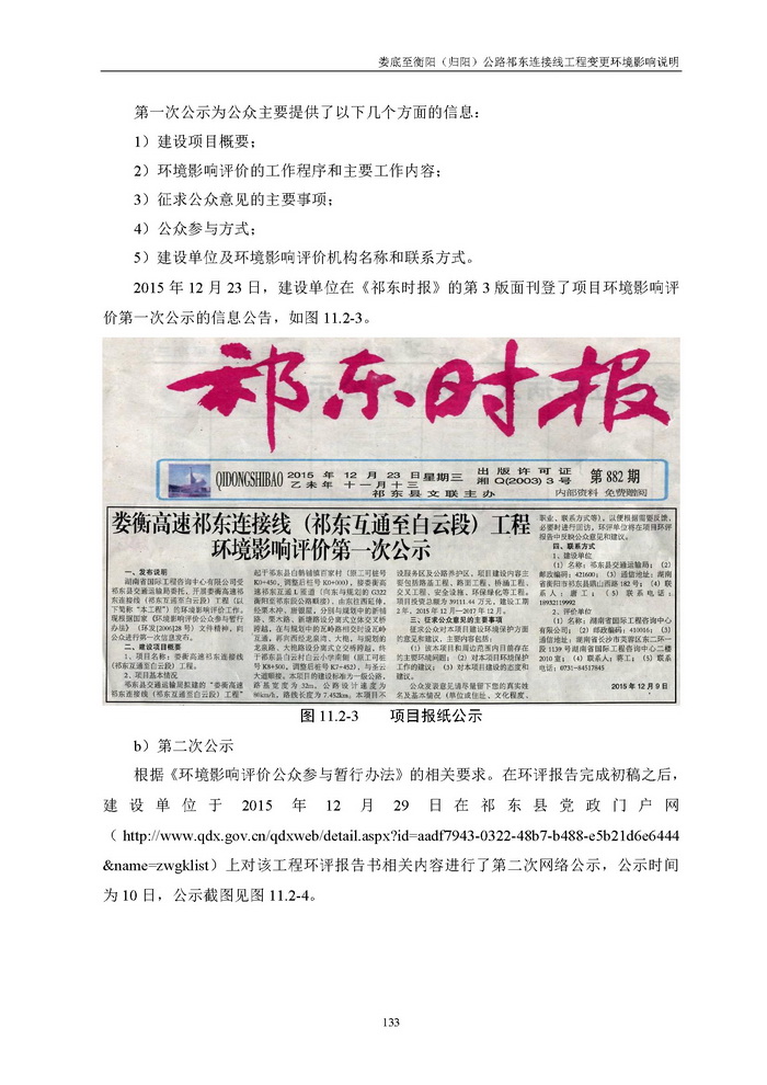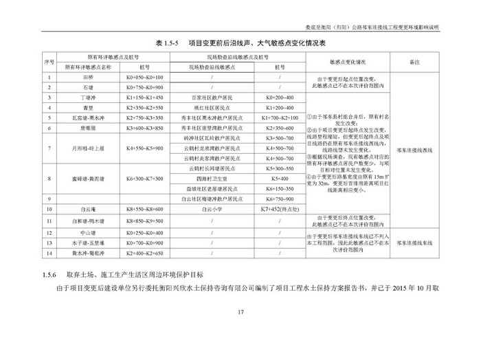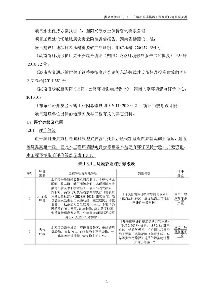 婁底至衡陽(歸陽)公路祁東連接線工程變更環境影響說明(報批)