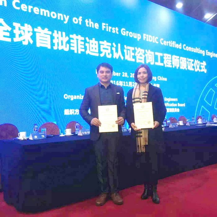 11月28日,由國際咨詢工程師聯(lián)合會(FIDIC、菲迪克)與中國工程咨詢協(xié)會聯(lián)合舉行的“全球首批菲迪克認證咨詢工程師頒證儀式”在北京舉行。中心副總經(jīng)理肖艷菊、生態(tài)規(guī)劃處處長劉昭成分別通過對菲迪克課程的系統(tǒng)學習,順利通過考試,成為全球首批菲迪克認證咨詢工程師。擁有菲迪克認證咨詢工程師,意味著中心已具有國際視野、熟悉國際規(guī)則和慣例的高端技術人才,將為中心開展國際化咨詢業(yè)務提供更加強大的技術支撐。